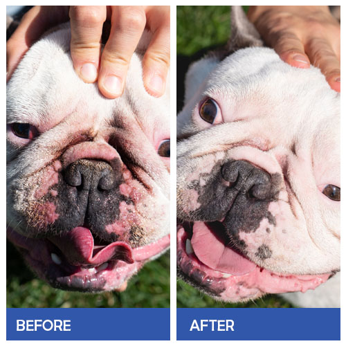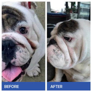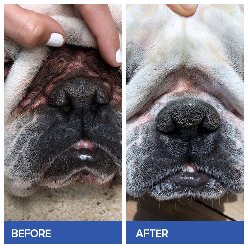 Your dog’s sense of smell is fifty times more sensitive than yours. So by the time you notice an unpleasant odor coming from those irresistible wrinkles, your dog has been enduring it for a while. Don’t let your best friend suffer in silence. View our photo and video gallery to see the dramatic and unretouched results you can achieve with Squishface Wrinkle Paste and Wrinkle Wipes. Your dog will be all smiles!
